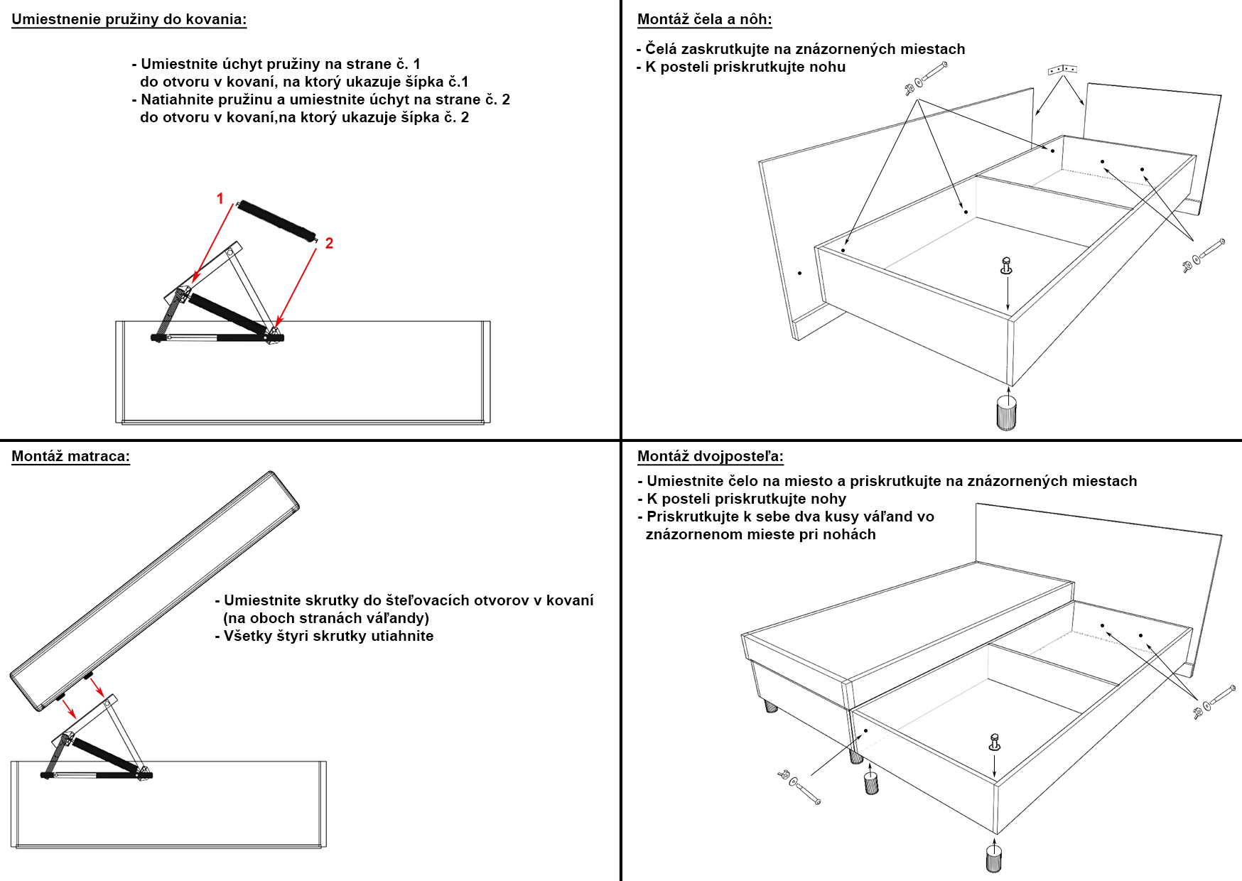 Možnosť objednať v rozmere 85 x 195 cm, 90 x 200 cm. Výber zo štyroch druhov molitanového matraca. Válenda je dodávaná už skompletizovaná, zabalená v kartóne a igelitovom obale. Nosnosť váľandy 130 kg.