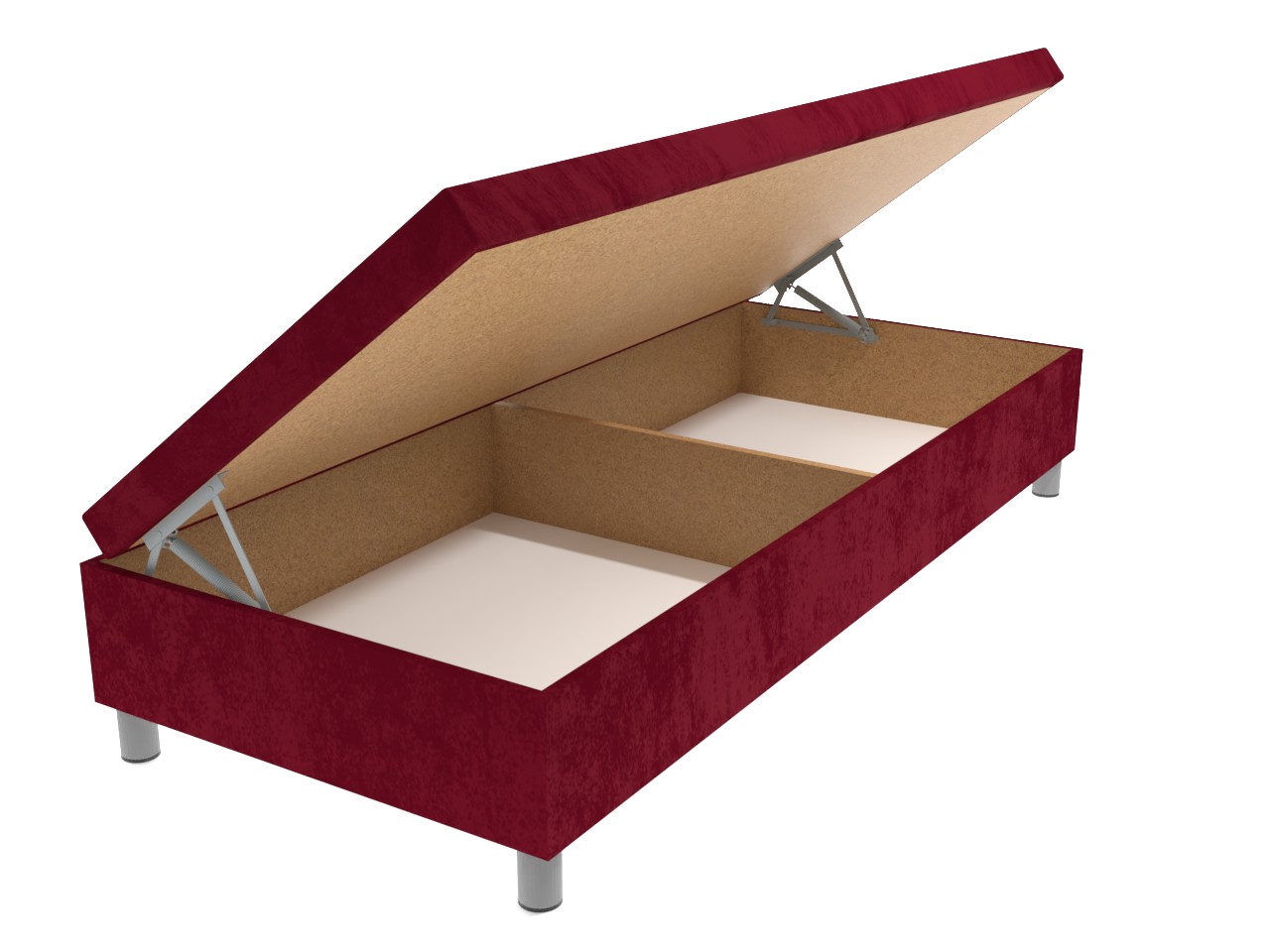 Moderná čalúnená váľanda na chrómových nohách patrí k obľúbeným typom jednolôžok. Válenda má nadštandardnú výšku ležacej plochy, čo uvítajú predovšetkým seniori. Válenda má pevnú konštrukciu z drevotrieskových dosiek a úložný priestor, ktorý sa otvára kvalitným pružinovým mechanizmom.