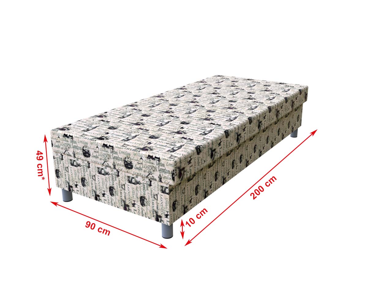 Váľanda Londýn 200x90 cm pružinová na nohách | Vzorované | Pružinové | 90 × 200 cm | Váľandy na nohách | Nábytok, čalúnené váľandy a postele - PrimaSpánok.sk