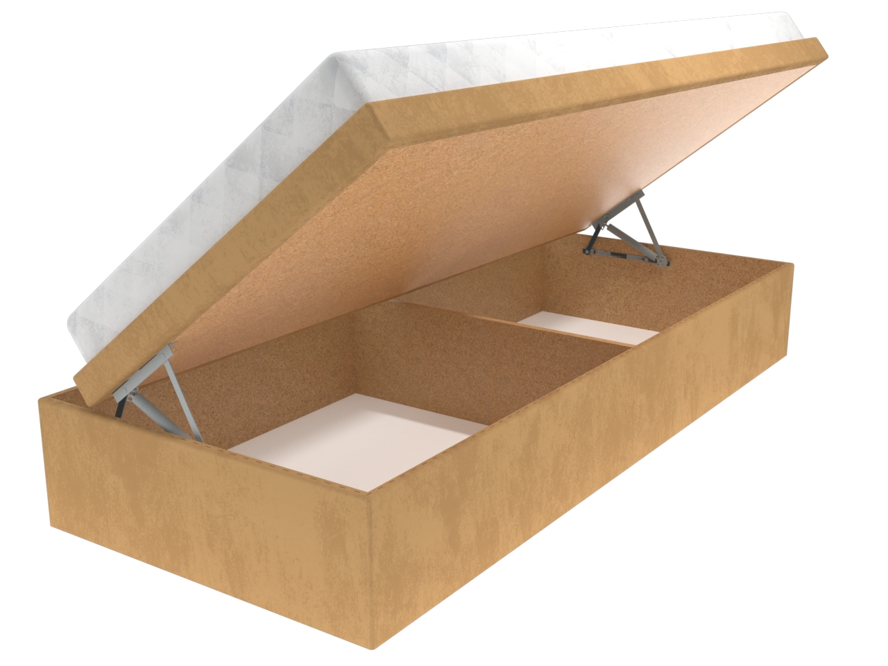 • Posteľ je vybavená pevnou doskou, na ktorej je umiestnený matrac. Otvorením pevnej dosky získate prístup k priestornému úložnému priestoru, ktorý je vhodný na uloženie perín, vankúšov a ďalších vecí