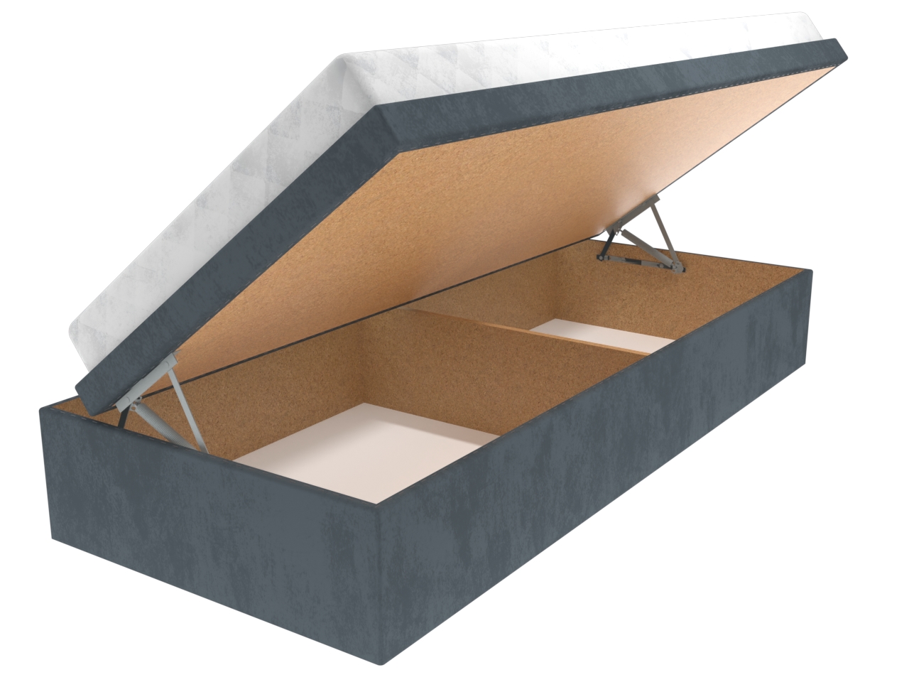 • Posteľ je vybavená pevnou doskou, na ktorej je umiestnený matrac. Otvorením pevnej dosky získate prístup k priestornému úložnému priestoru, ktorý je vhodný na uloženie perín, vankúšov a ďalších vecí
