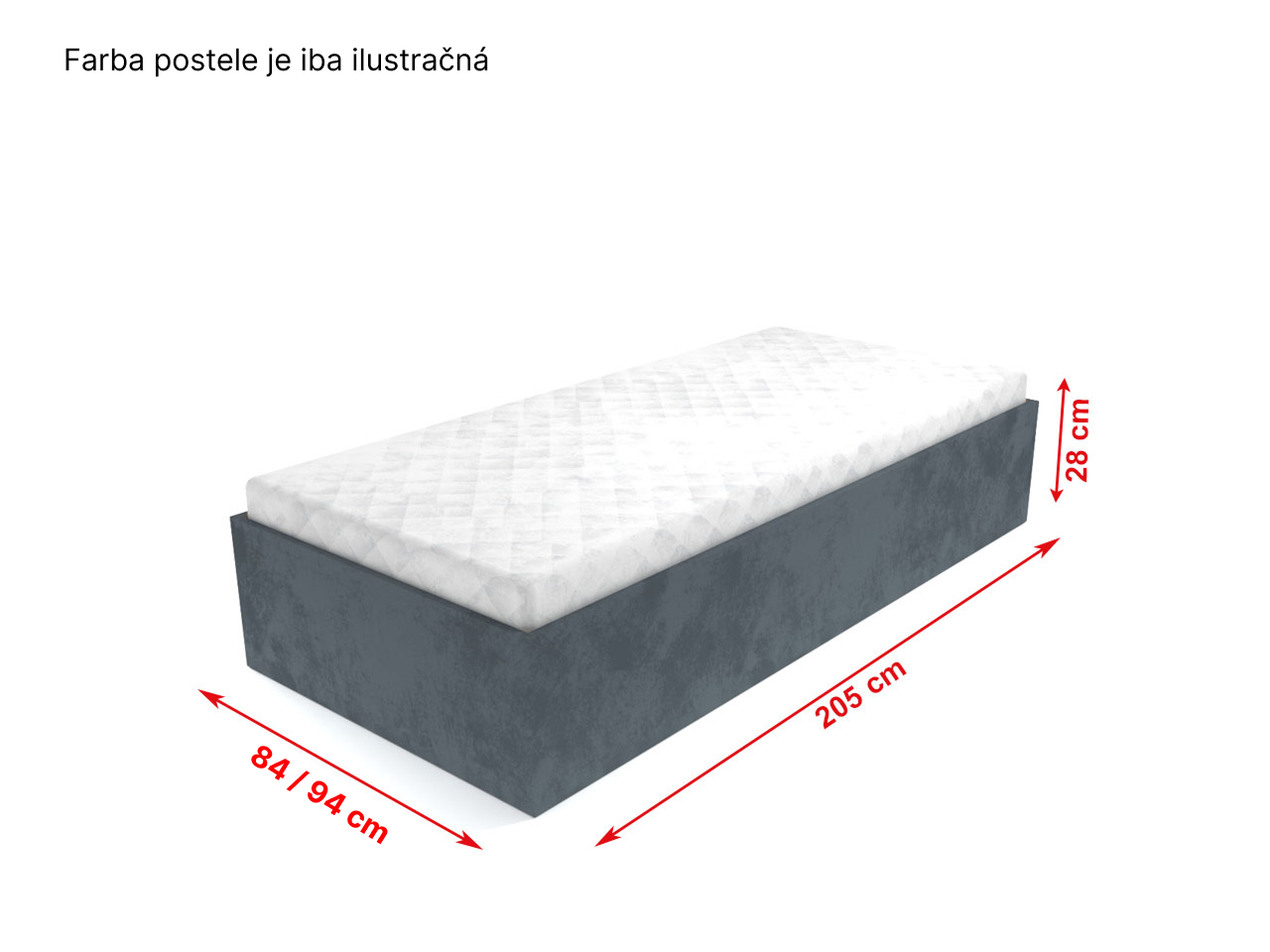 Pohodlná celočalúnená posteľ pre Vašu relaxáciu a oddych. Posteľ má pevnú konštrukciu z drevotrieskových dosiek. Posteľ je vybavená kvalitným lamelovým roštom, ktorého otvorením získate prístup k priestrannému úložnému priestoru, ktorý je vhodný na uloženie perín, vankúšov a ďalších vecí.