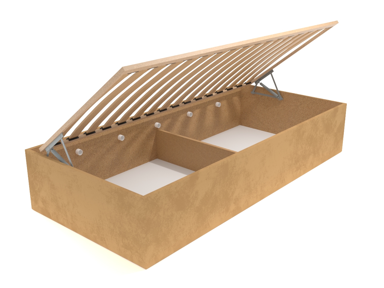 • Posteľ je vybavená kvalitným výklopným lamelovým roštom, ktorého otvorením získate prístup k priestrannému úložnému priestoru vhodnému na uloženie perín, vankúšov a ďalších vecí
