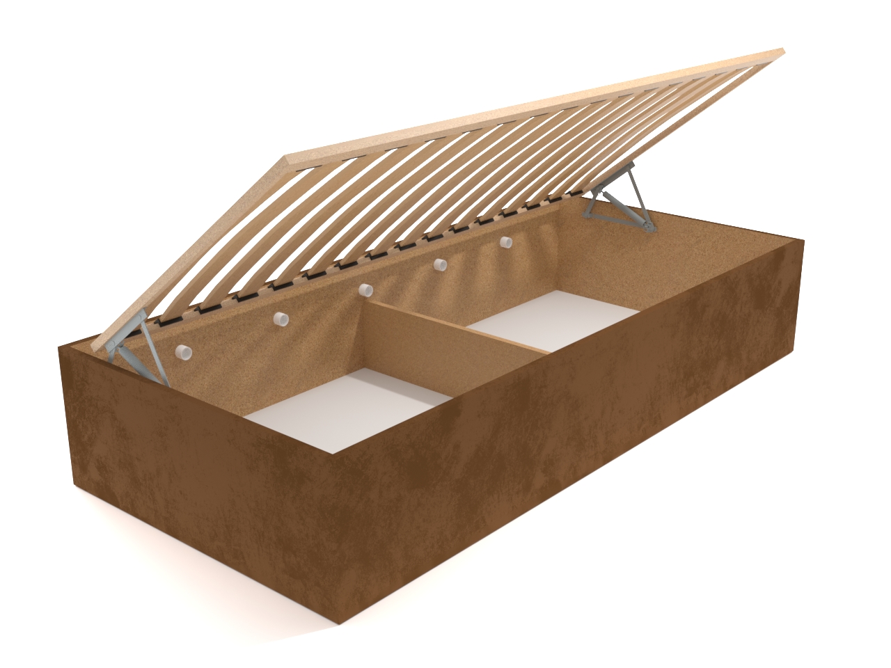 • Posteľ je vybavená kvalitným výklopným lamelovým roštom, ktorého otvorením získate prístup k priestrannému úložnému priestoru vhodnému na uloženie perín, vankúšov a ďalších vecí