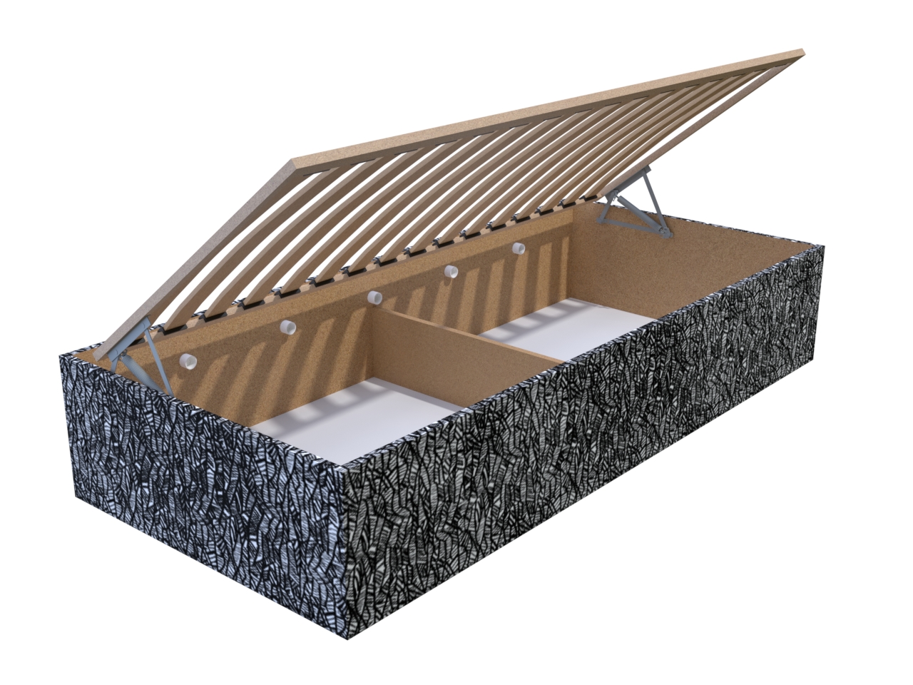 • Posteľ je vybavená kvalitným výklopným lamelovým roštom, ktorého otvorením získate prístup k priestrannému úložnému priestoru vhodnému na uloženie perín, vankúšov a ďalších vecí