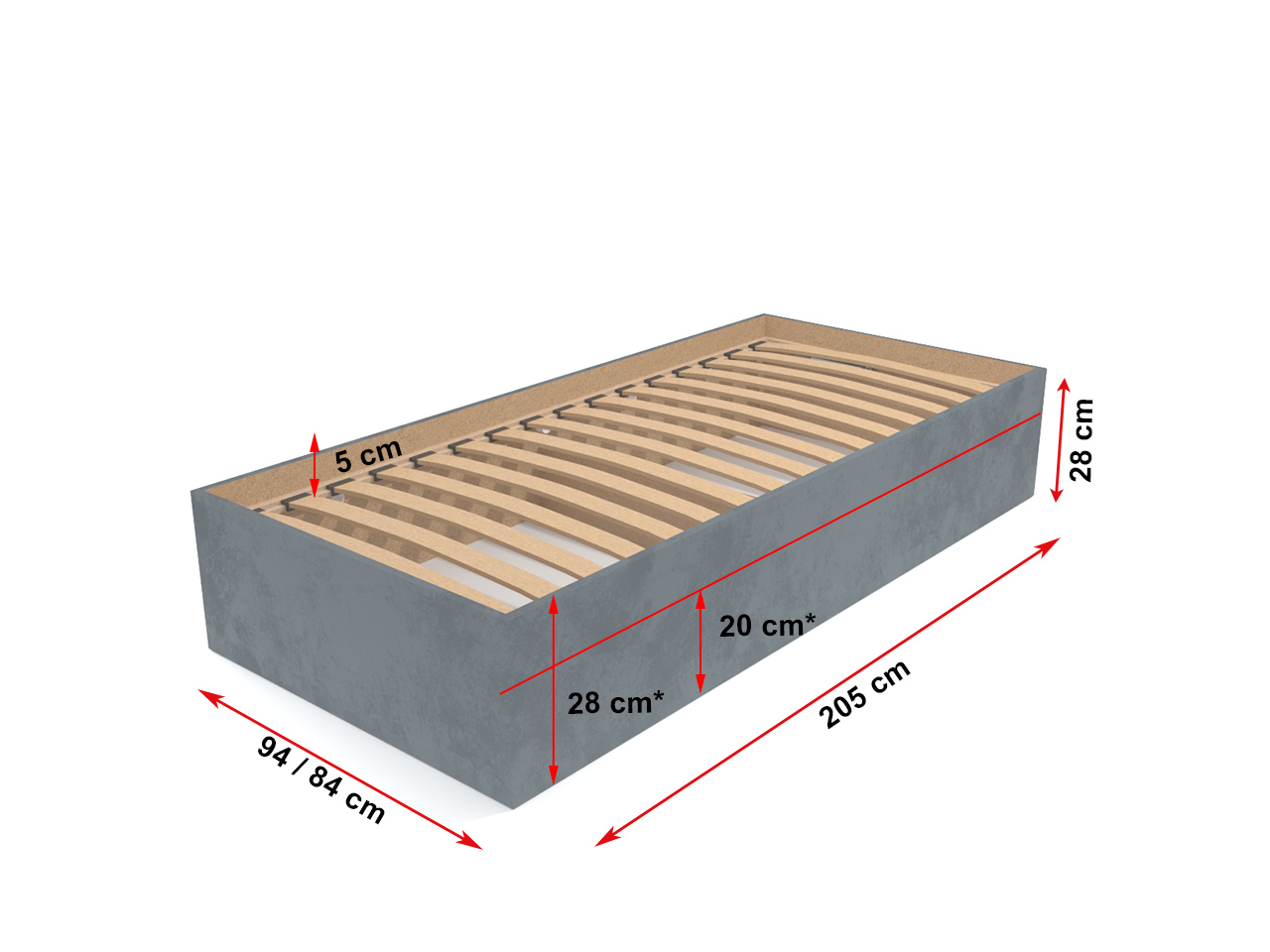 *Výška rámu postele sa zmení v prípade prikúpenia zvýšenia úložného priestoru o 5 alebo 10 cm.