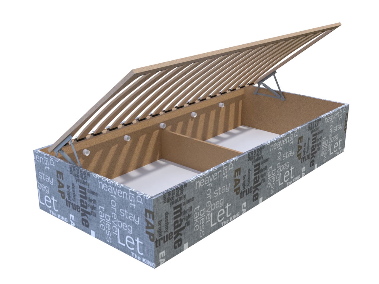 • Posteľ je vybavená kvalitným výklopným lamelovým roštom, ktorého otvorením získate prístup k priestrannému úložnému priestoru vhodnému na uloženie perín, vankúšov a ďalších vecí
