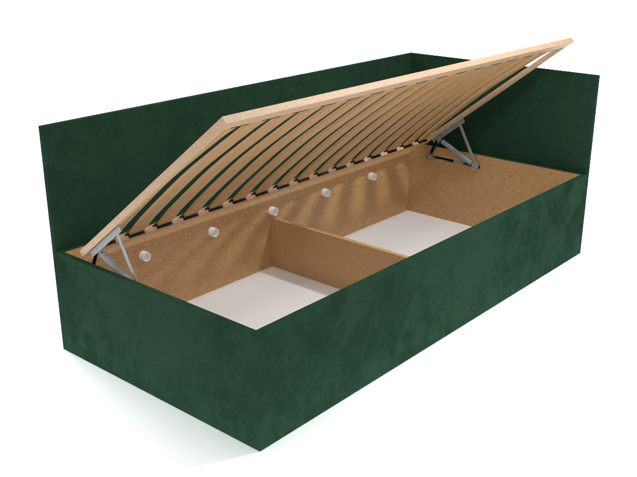 • Posteľ je vybavená kvalitným výklopným lamelovým roštom, ktorého otvorením získate prístup k priestrannému úložnému priestoru vhodnému na uloženie perín, vankúšov a ďalších vecí