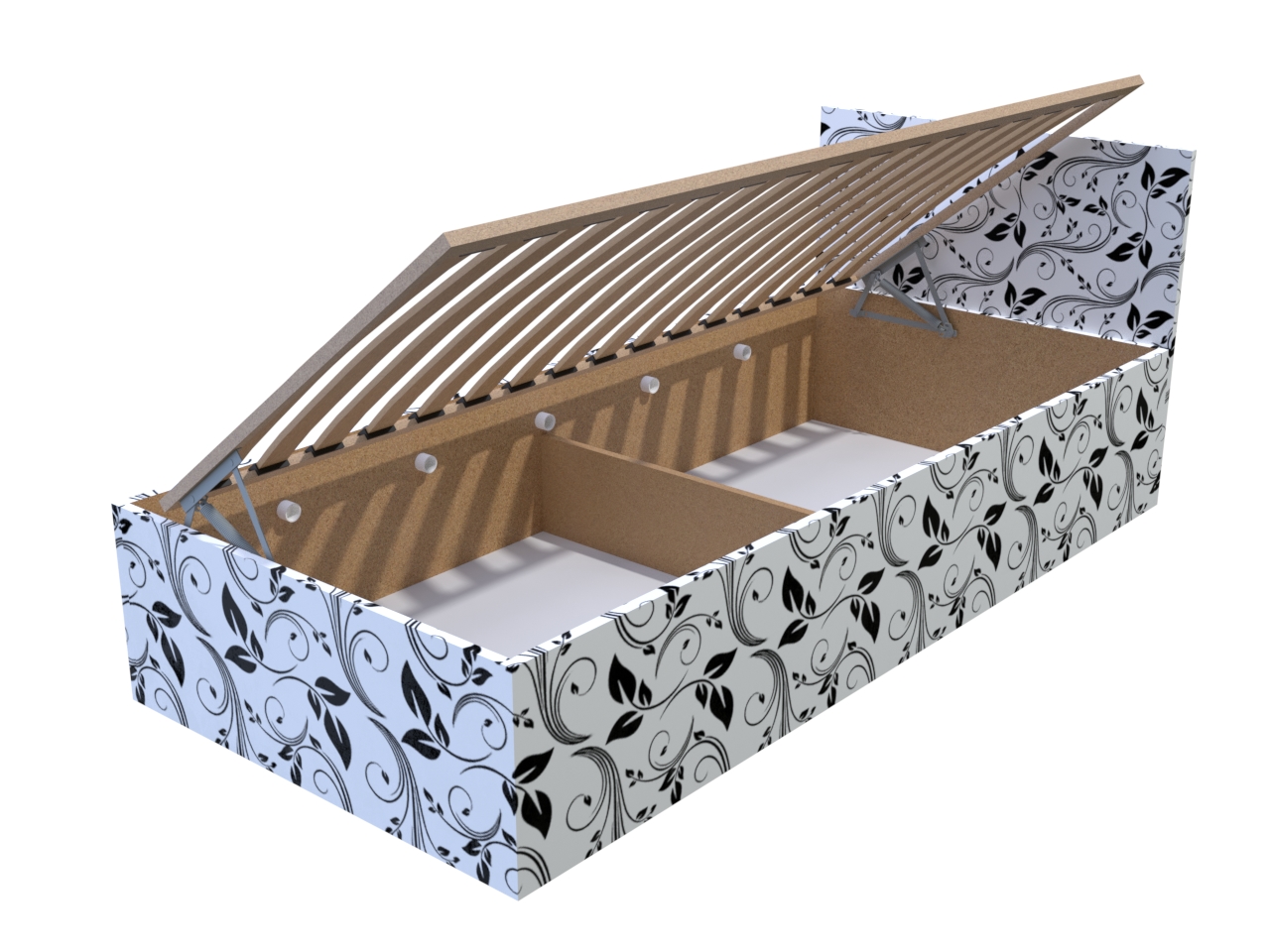 • Posteľ je vybavená kvalitným výklopným lamelovým roštom, ktorého otvorením získate prístup k priestrannému úložnému priestoru vhodnému na uloženie perín, vankúšov a ďalších vecí