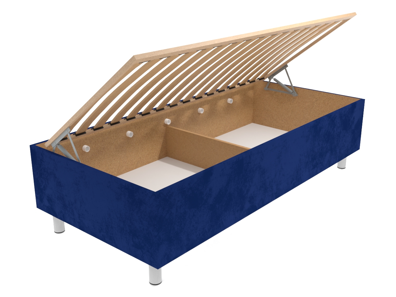 Váľanda Ema modrá 200x90 cm s úložným priestorom | Jednofarebné | Bez čela | Na nohách s lamelovým roštom | Váľandy s vlož. matracom | Nábytok, čalúnené váľandy a postele - PrimaSpánok.sk