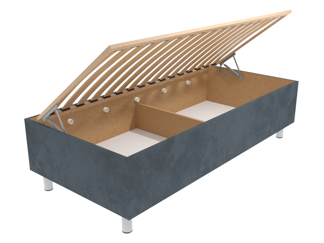 Váľanda Ema šedá 200x90 cm s úložným priestorom | Jednofarebné | Bez čela | Na nohách s lamelovým roštom | Váľandy s vlož. matracom | Nábytok, čalúnené váľandy a postele - PrimaSpánok.sk