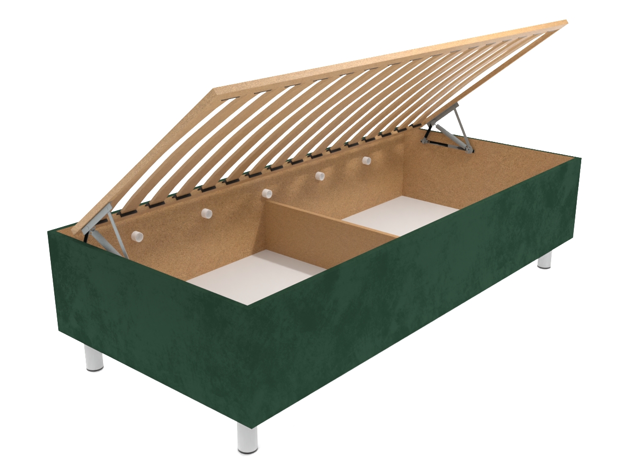 Váľanda Ema tmavo zelená 200x90 cm s úložným priestorom | Jednofarebné | Bez čela | Na nohách s lamelovým roštom | Váľandy s vlož. matracom | Nábytok, čalúnené váľandy a postele - PrimaSpánok.sk