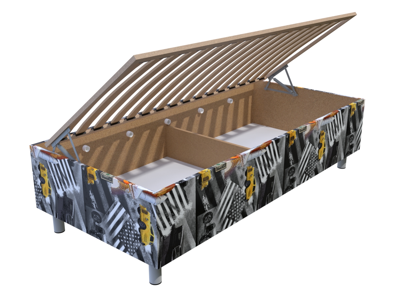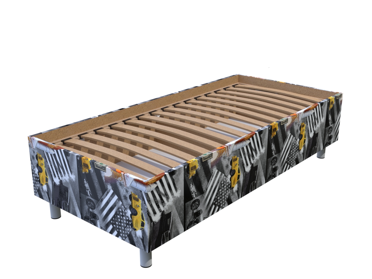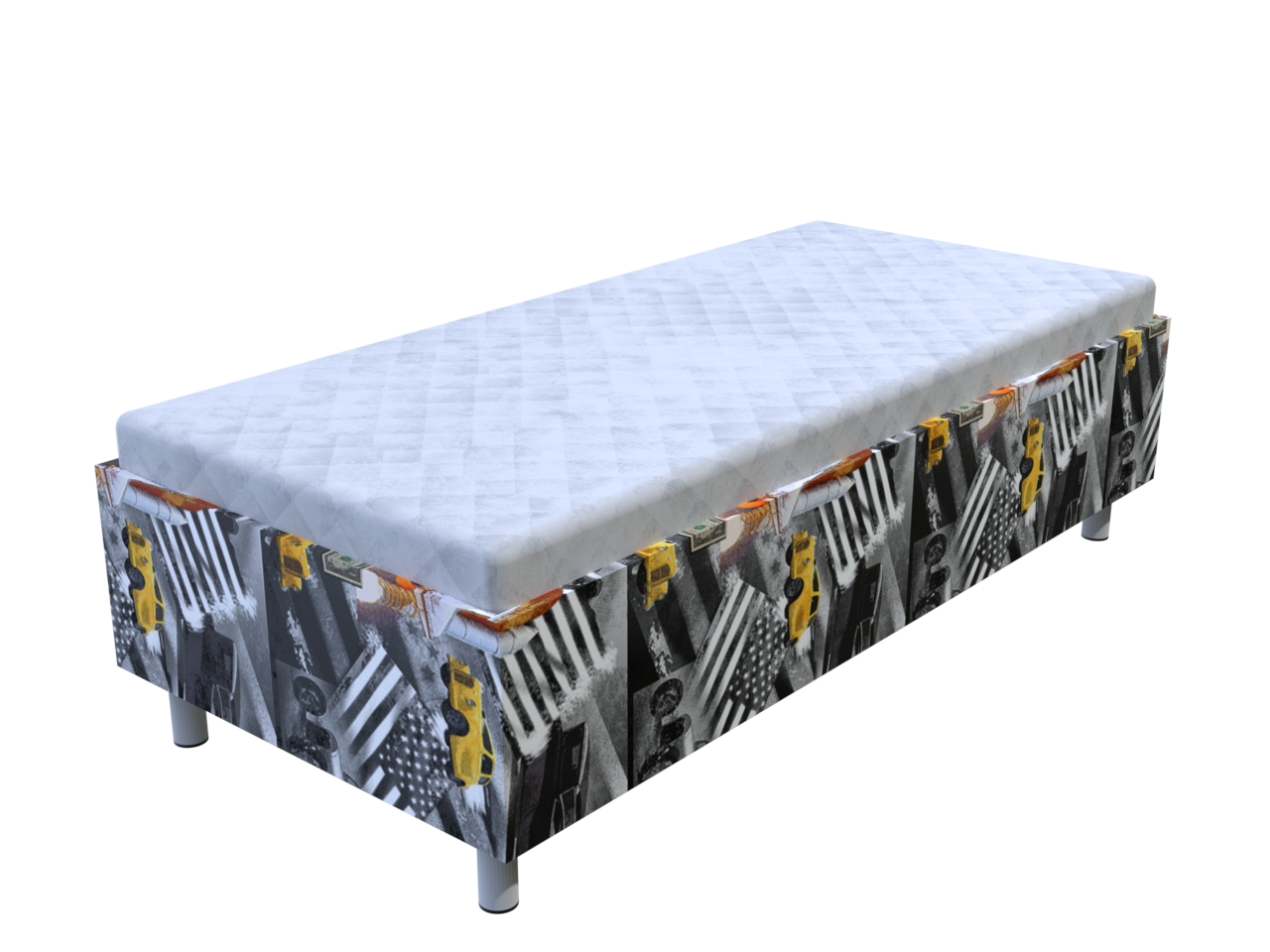 Váľanda Ema USA 200x90 cm s úložným priestorom | Vzorované | Bez čela | Na nohách s lamelovým roštom | Váľandy s vlož. matracom | Nábytok, čalúnené váľandy a postele - PrimaSpánok.sk