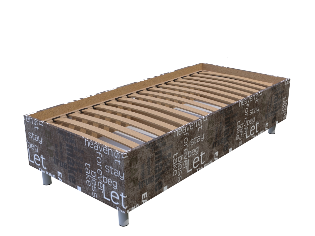 Váľanda Ema Words hnedá 200x90 cm s úložným priestorom | Vzorované | Bez čela | Na nohách s lamelovým roštom | Váľandy s vlož. matracom | Nábytok, čalúnené váľandy a postele - PrimaSpánok.sk