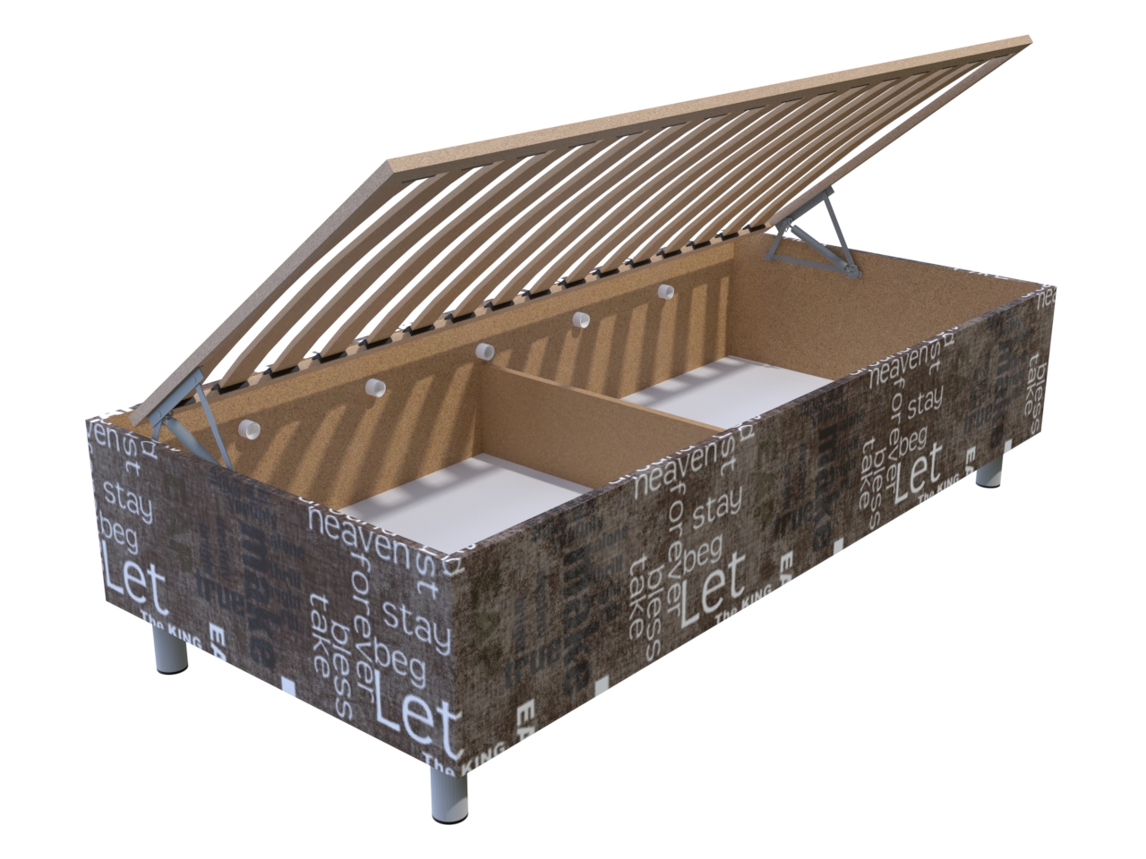 • Posteľ je vybavená kvalitným výklopným lamelovým roštom, ktorého otvorením získate prístup k priestrannému úložnému priestoru, vhodnému na uloženie perín, vankúšov a ďalších vecí