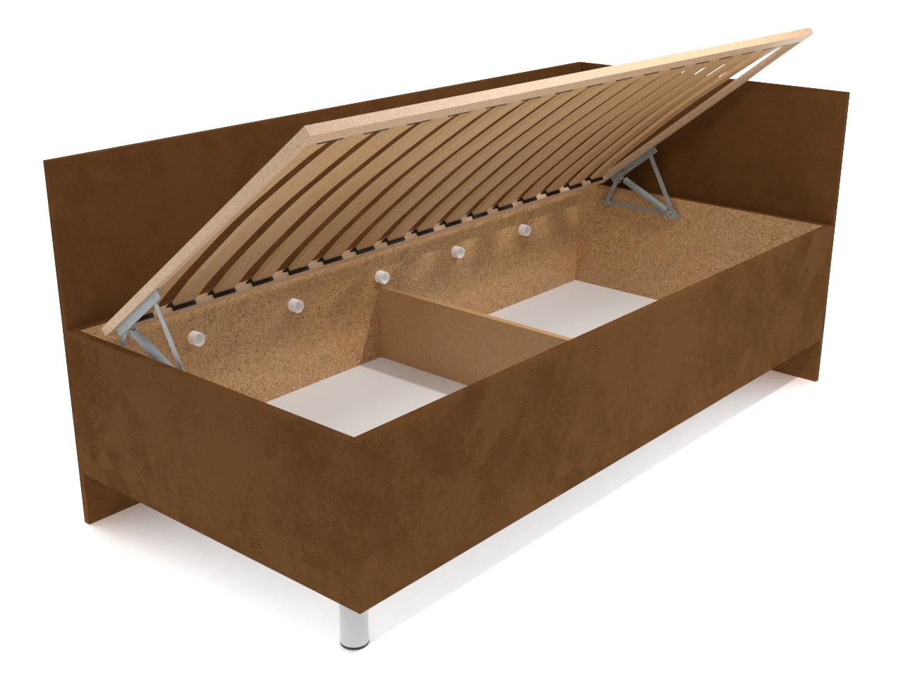 • Posteľ je vybavená kvalitným výklopným lamelovým roštom, ktorého otvorením získate prístup k priestrannému úložnému priestoru vhodnému na uloženie perín, vankúšov a ďalších vecí