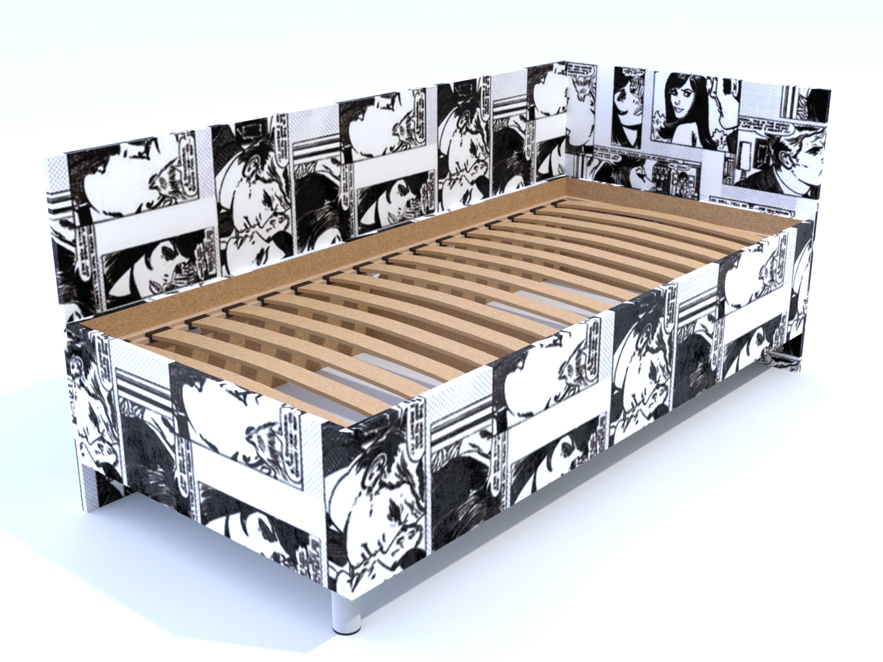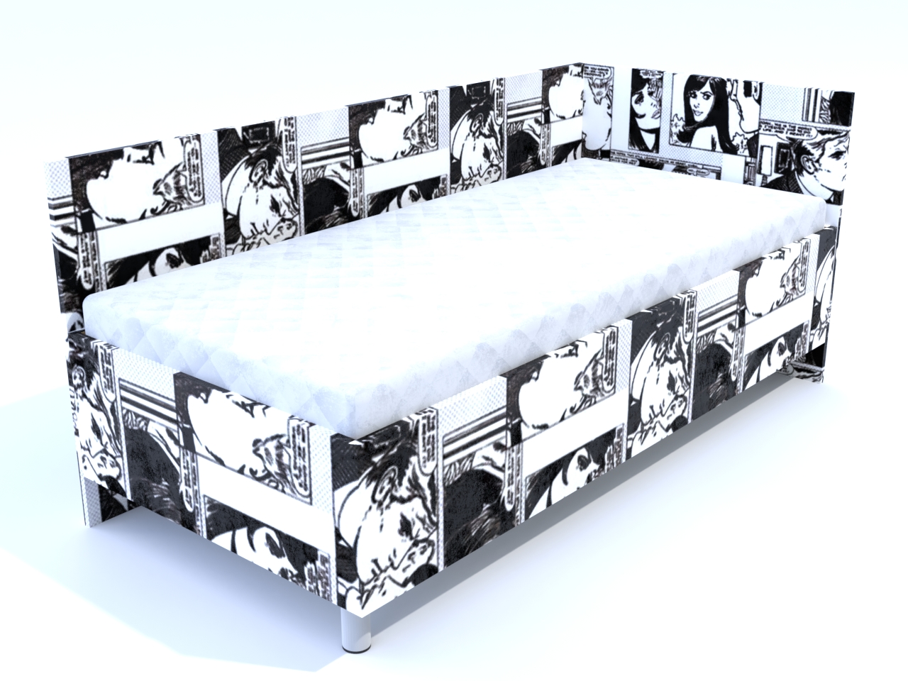 Váľanda Marta Comix Black and White 200x90 cm s úložným priestorom | Vzorované | S malým a veľkým čelom | Na nohách s lamelovým roštom | Váľandy s vlož. matracom | Nábytok, čalúnené váľandy a postele - PrimaSpánok.sk