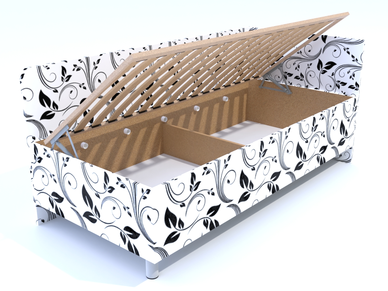 • Posteľ je vybavená kvalitným výklopným lamelovým roštom, ktorého otvorením získate prístup k priestrannému úložnému priestoru vhodnému na uloženie perín, vankúšov a ďalších vecí