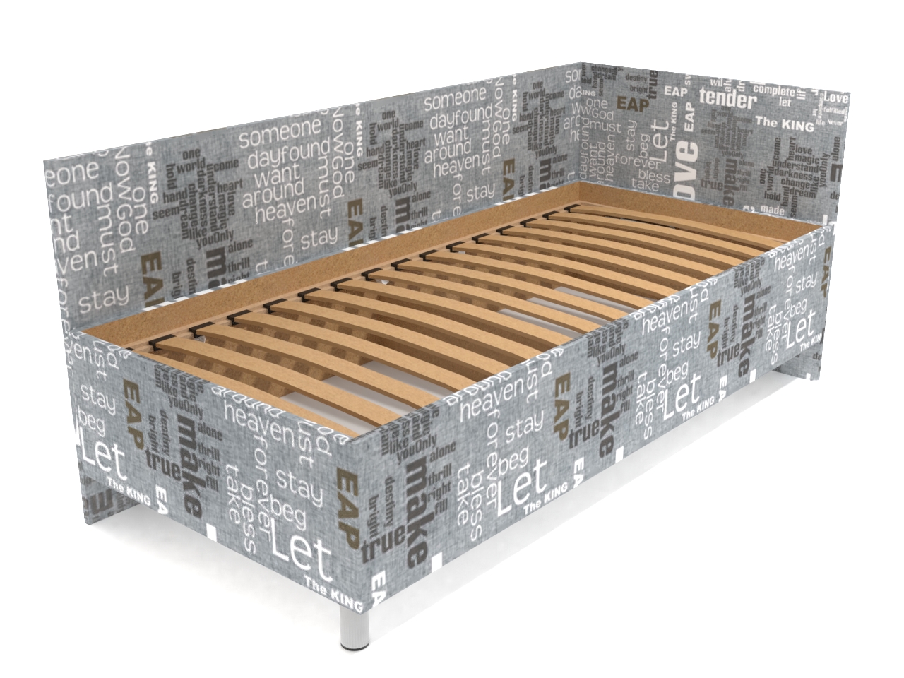 Váľanda Marta Words šedá 200x90 cm s úložným priestorom | Vzorované | S malým a veľkým čelom | Na nohách s lamelovým roštom | Váľandy s vlož. matracom | Nábytok, čalúnené váľandy a postele - PrimaSpánok.sk