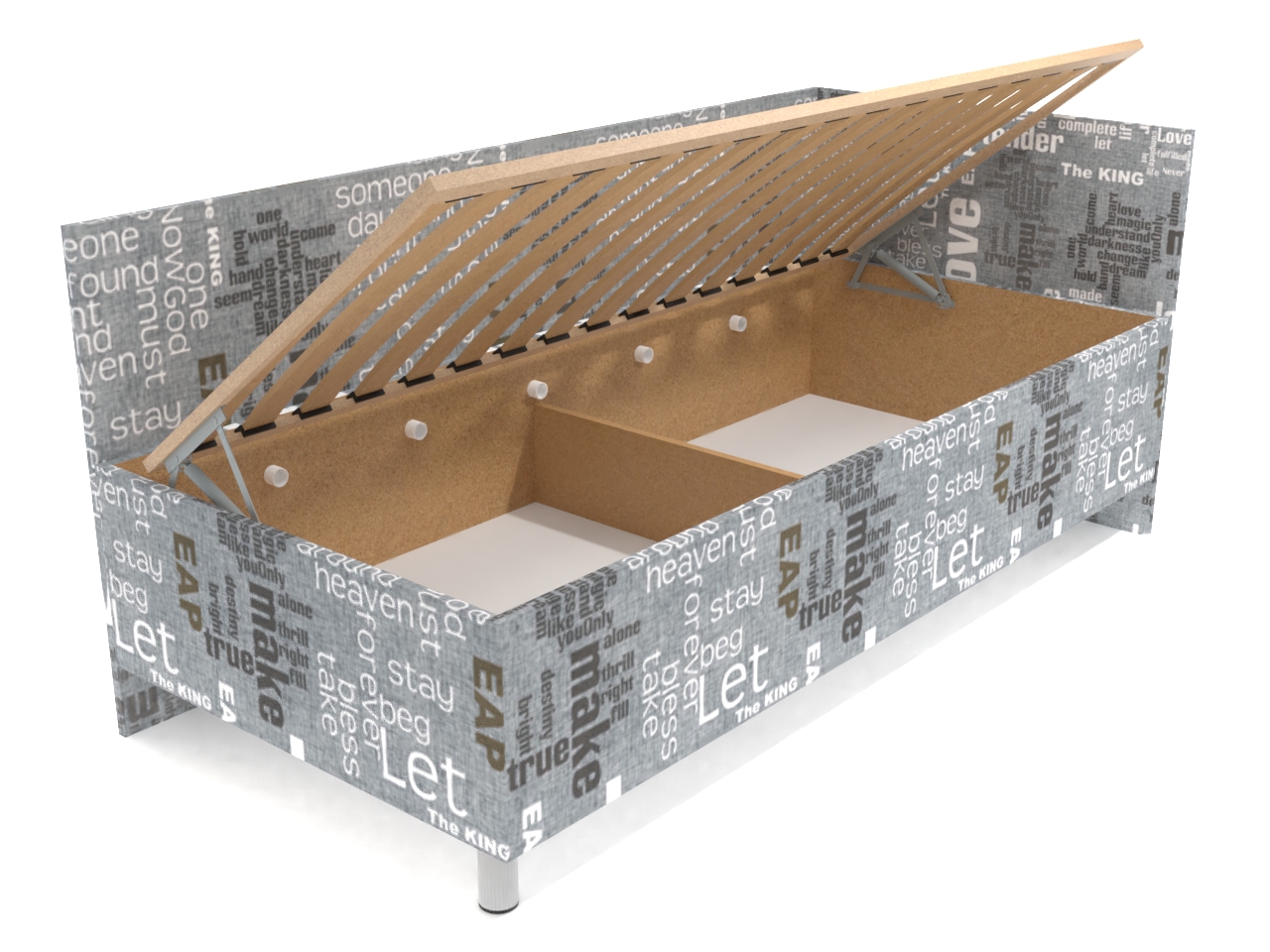• Posteľ je vybavená kvalitným výklopným lamelovým roštom, ktorého otvorením získate prístup k priestrannému úložnému priestoru vhodnému na uloženie perín, vankúšov a ďalších vecí