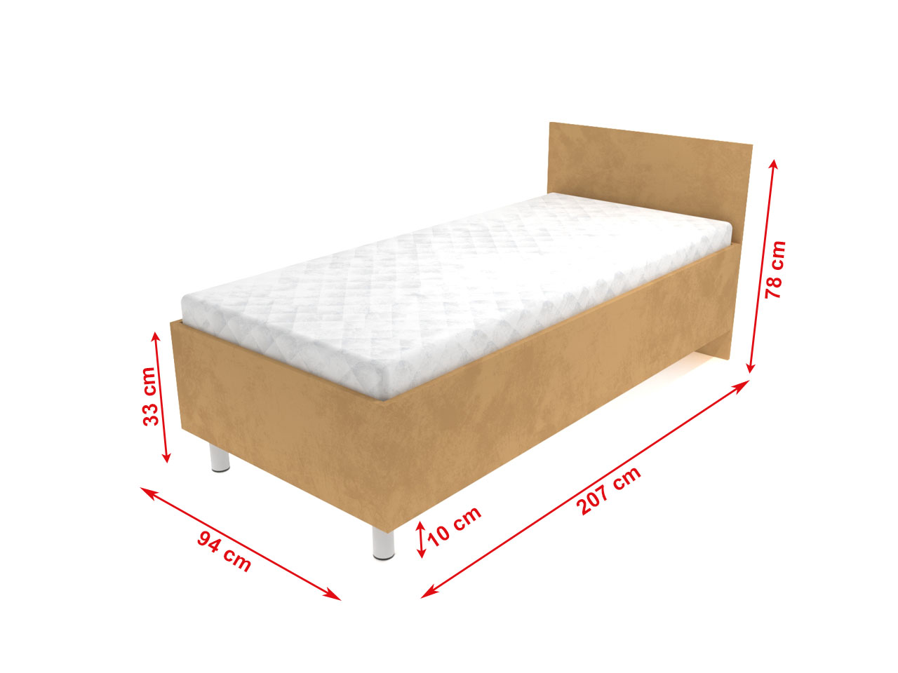 Možnosť objednať bez matraca či s jedným z troch ponúkaných matracov, ktoré Vám zaistia kvalitný a príjemný spánok. Nosnosť postele 130 kg.