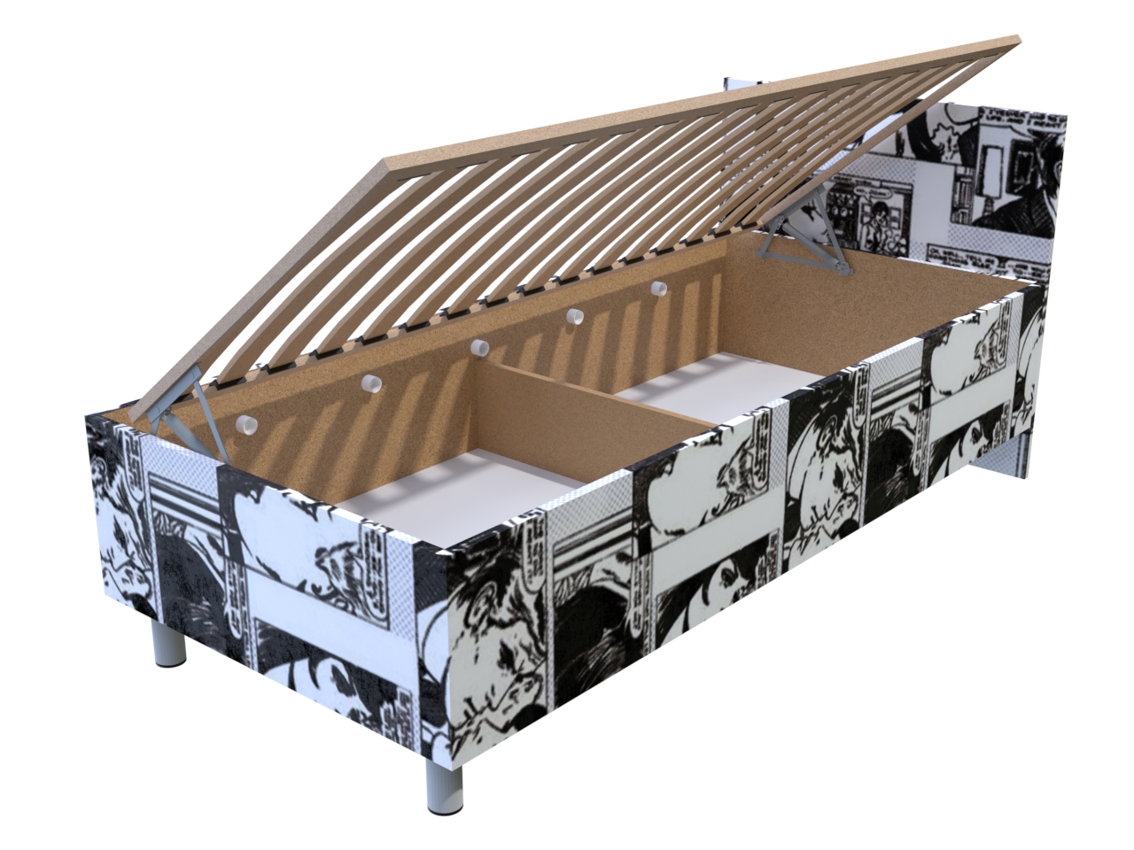 • Posteľ je vybavená kvalitným výklopným lamelovým roštom, ktorého otvorením získate prístup k priestrannému úložnému priestoru, vhodnému na uloženie perín, vankúšov a ďalších vecí