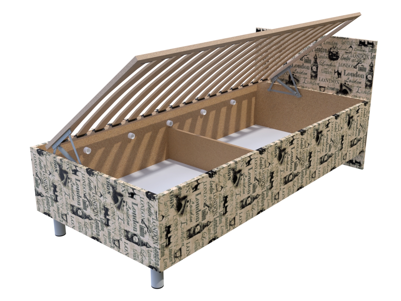 Váľanda Hana Londýn 200x90 cm s úložným priestorom | Vzorované | S malým čelom | Na nohách s lamelovým roštom | Váľandy s vlož. matracom | Nábytok, čalúnené váľandy a postele - PrimaSpánok.sk