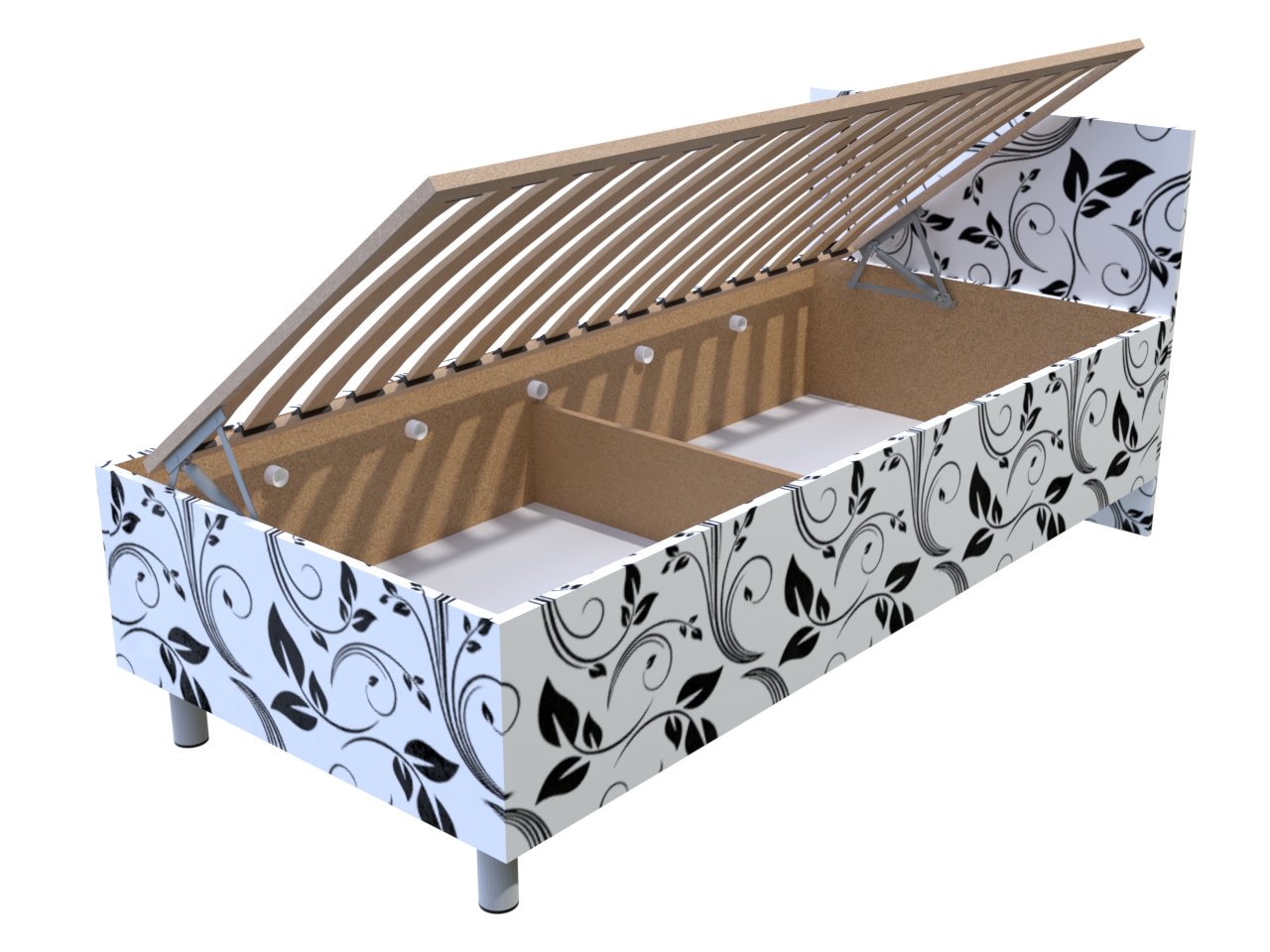 • Posteľ je vybavená kvalitným výklopným lamelovým roštom, ktorého otvorením získate prístup k priestrannému úložnému priestoru, vhodnému na uloženie perín, vankúšov a ďalších vecí