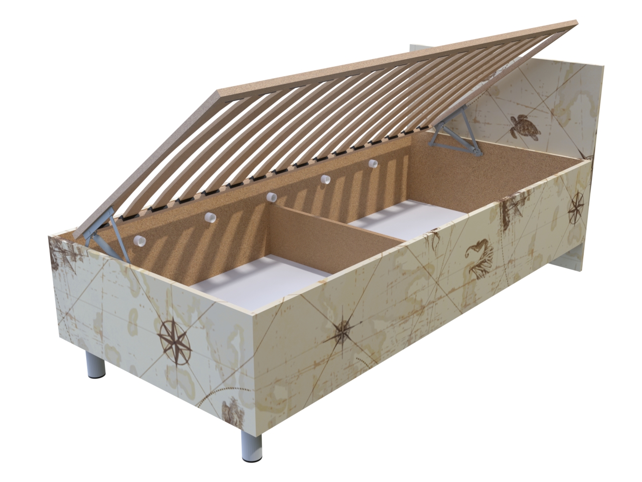 Váľanda Hana Mapa 200x90 cm s úložným priestorom | Vzorované | S malým čelom | Na nohách s lamelovým roštom | Váľandy s vlož. matracom | Nábytok, čalúnené váľandy a postele - PrimaSpánok.sk