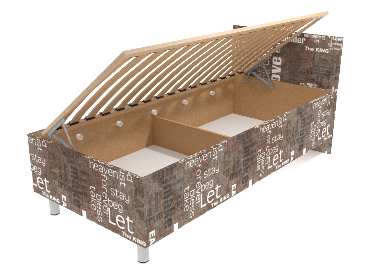 • Posteľ je vybavená kvalitným výklopným lamelovým roštom, ktorého otvorením získate prístup k priestrannému úložnému priestoru, vhodnému na uloženie perín, vankúšov a ďalších vecí