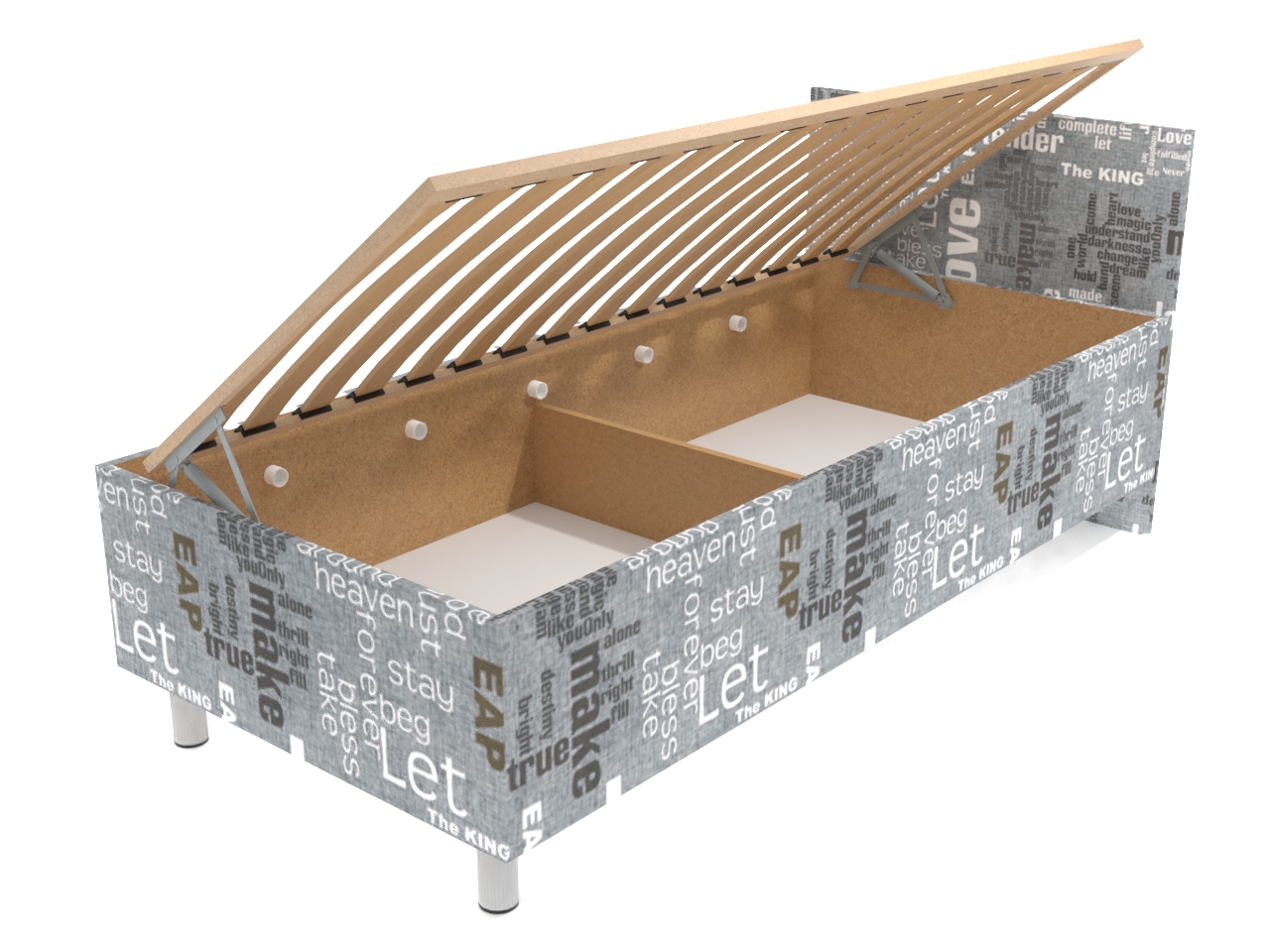 • Posteľ je vybavená kvalitným výklopným lamelovým roštom, ktorého otvorením získate prístup k priestrannému úložnému priestoru, vhodnému na uloženie perín, vankúšov a ďalších vecí
