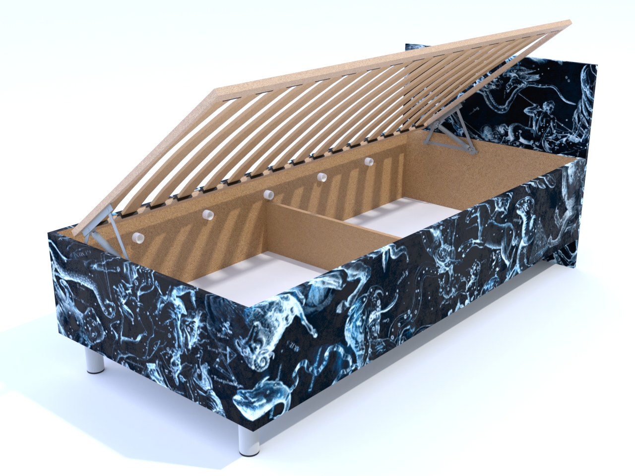 Váľanda Hana Zodiac 200x90 cm s úložným priestorom | Vzorované | S malým čelom | Na nohách s lamelovým roštom | Váľandy s vlož. matracom | Nábytok, čalúnené váľandy a postele - PrimaSpánok.sk