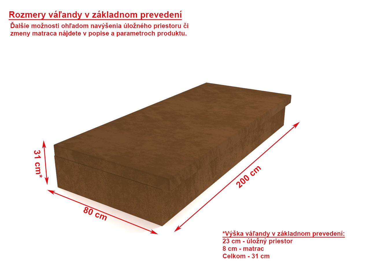 Váľanda so zvýšením úložného priestoru o 5 cm s týmto matracom